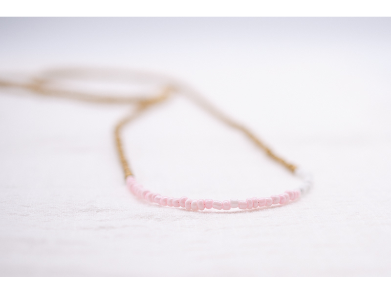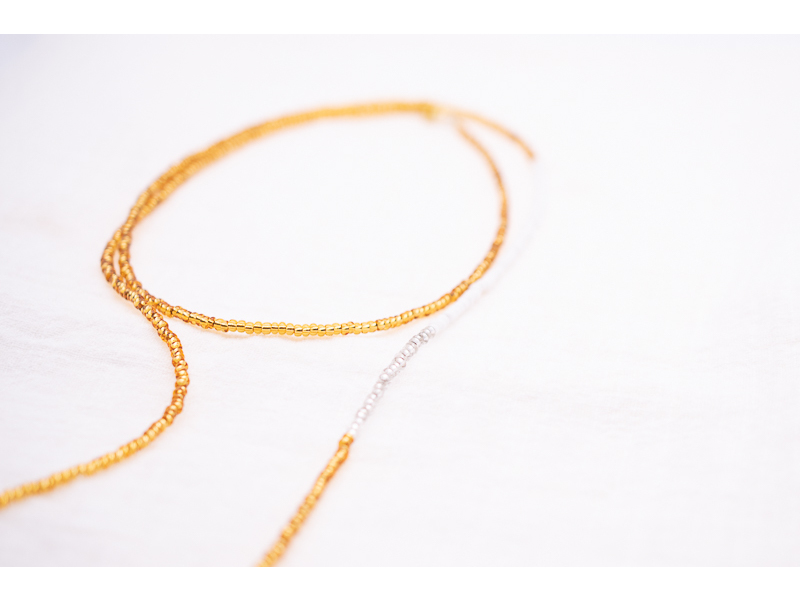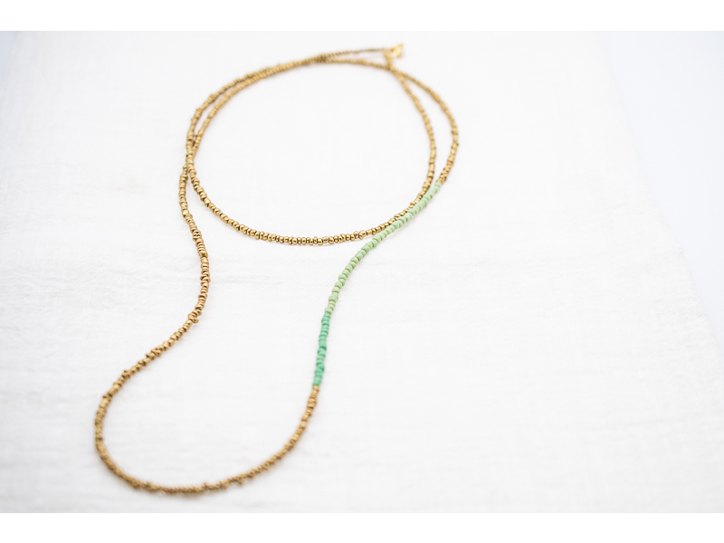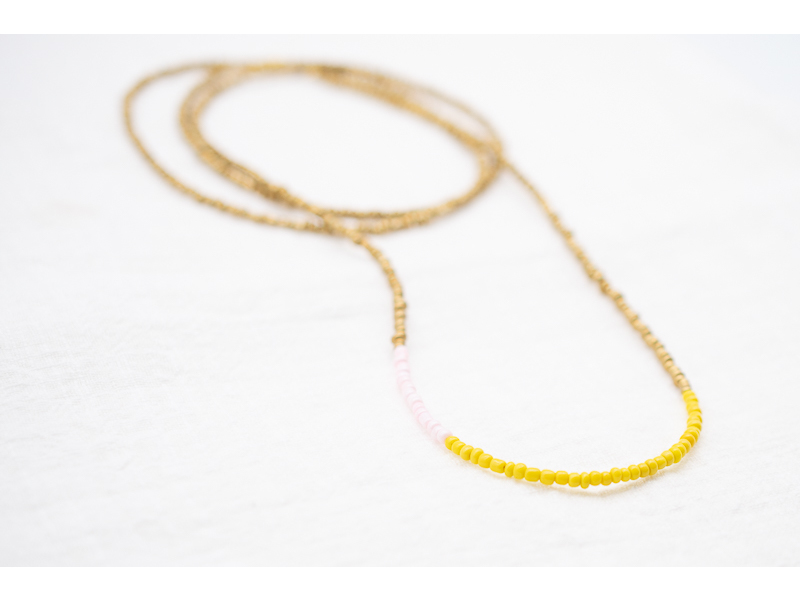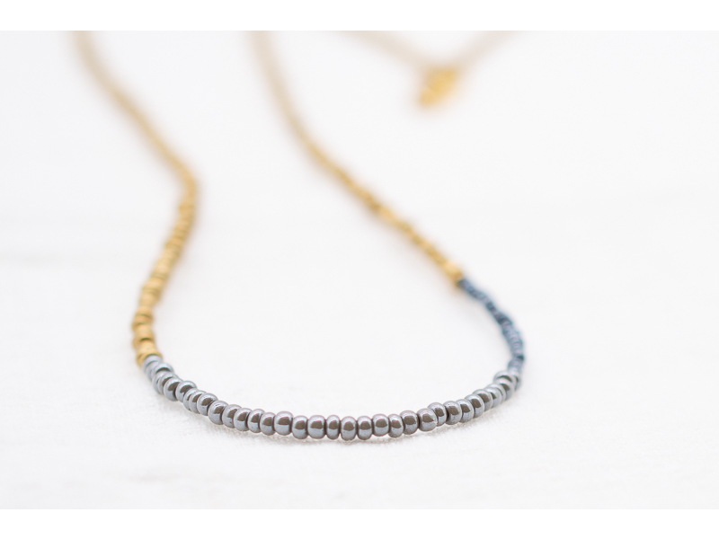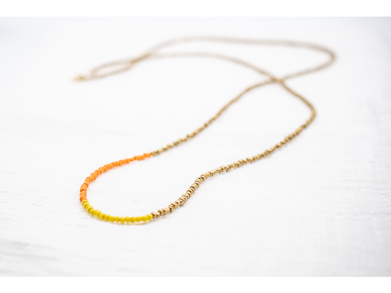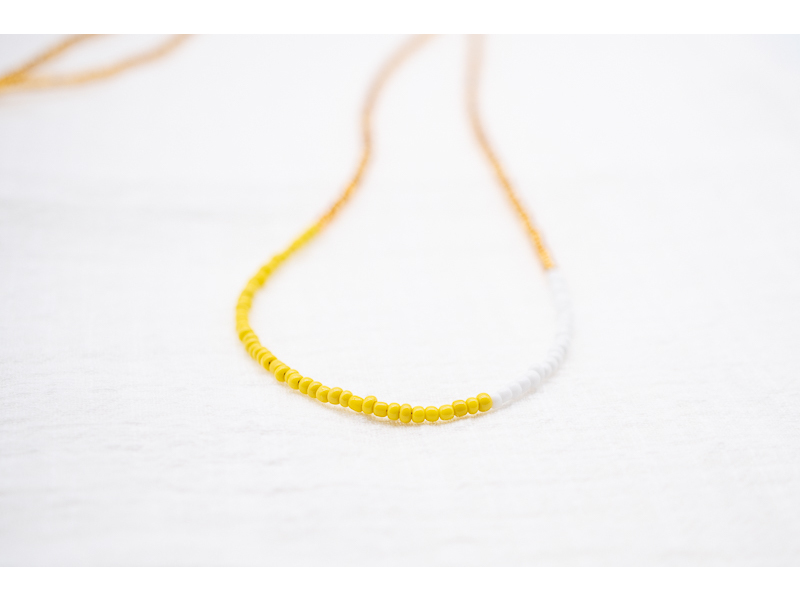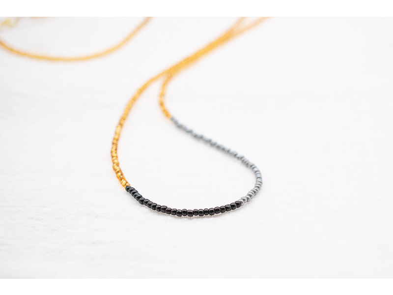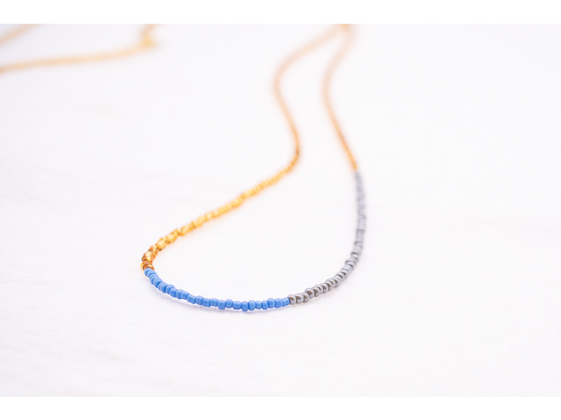 Add a bohemian flair to your wardrobe with this seed beaded necklace. Colorways updated each season.