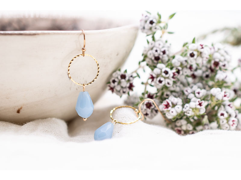 Approximately 1,5cm round textured gold plated hoops with a single tear drop shape crystal. Nickel free earring hooks.