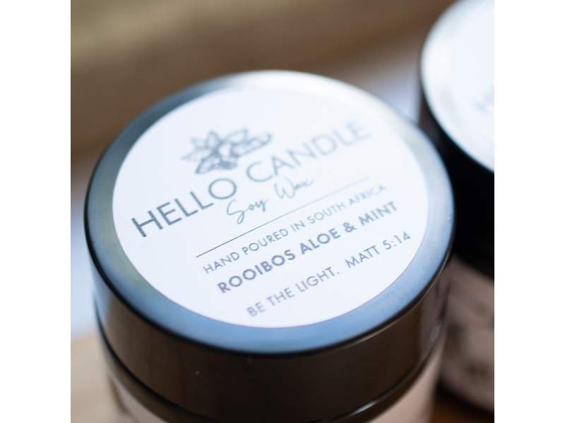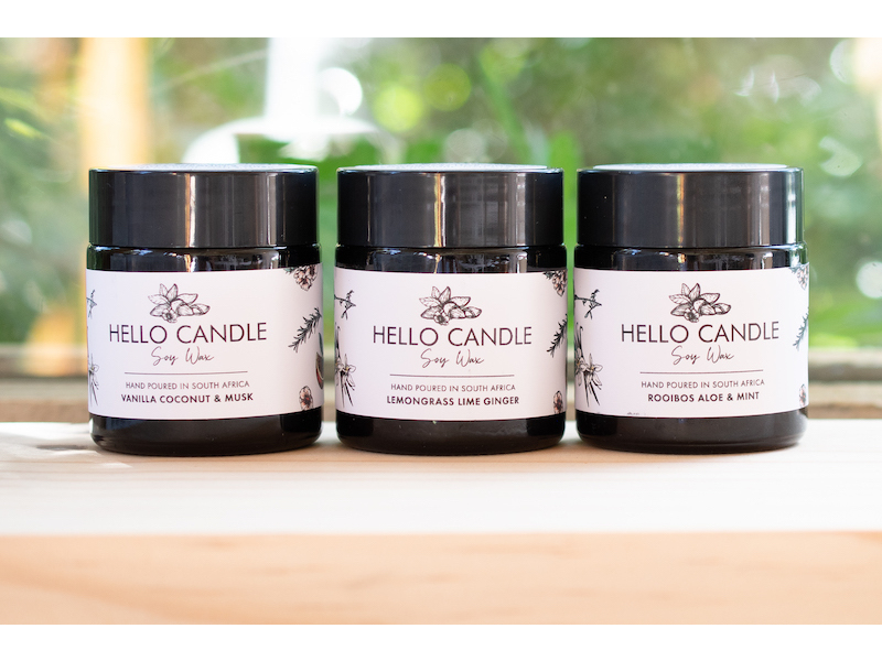 The Hello Candles are handmade with 100% soy wax and fragrance oils.