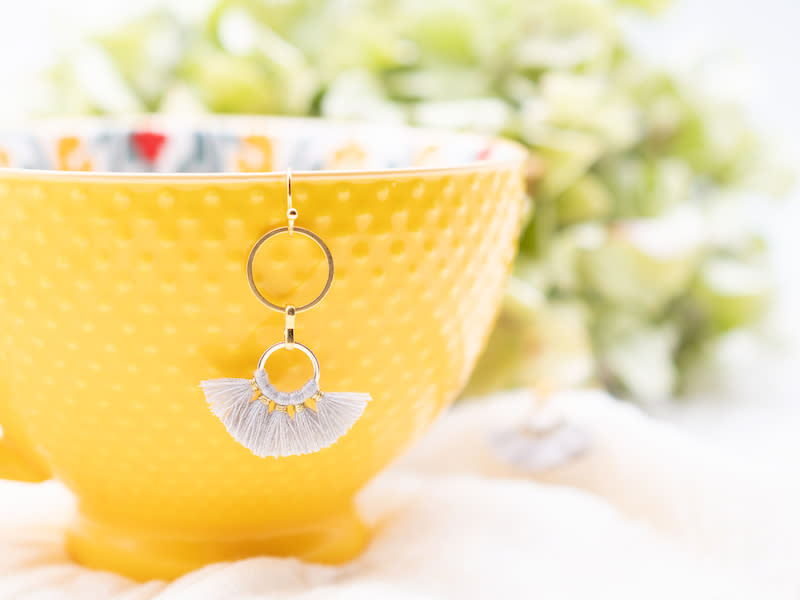 Approximately 4cm length earrrings with a cluster of mini tassels. Nickel free earring hooks.