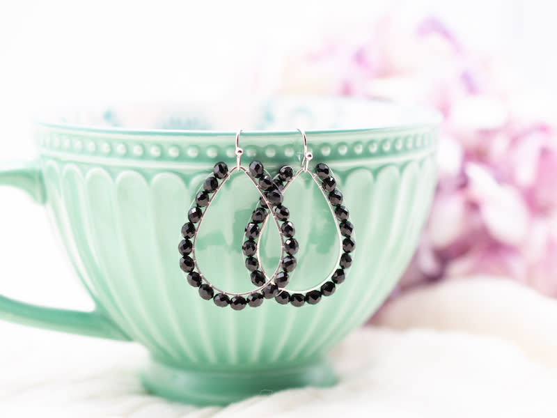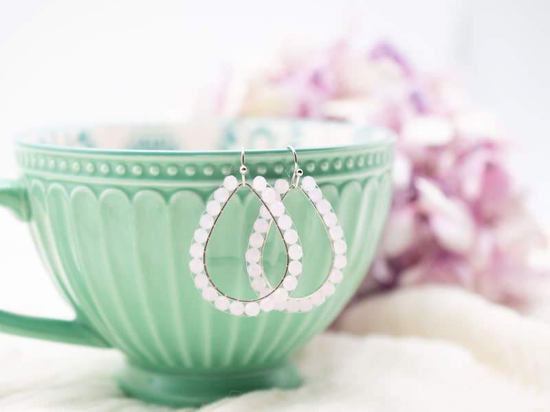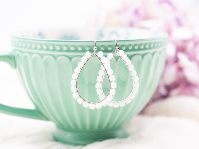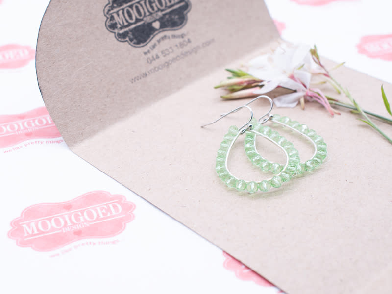 Approximately 3cm length silver plated tear drops, delicately threaded with 4mm crystal beads. Nickel free earring hooks. Please get in touch with us for more colour variations.