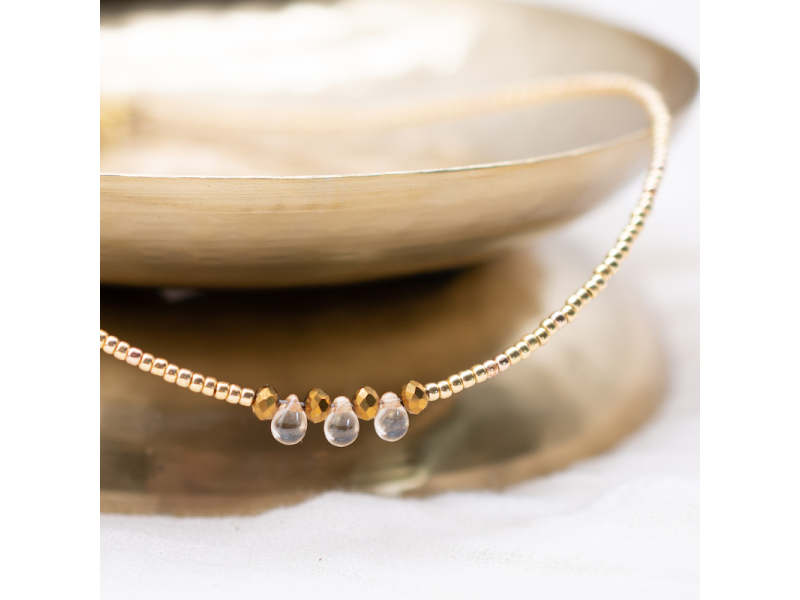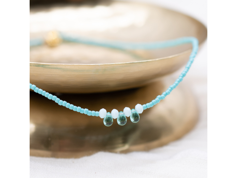 This is our best seller in our necklace range and looks beautiful layered or on its own. Available with a single tear drop bead or with 3 tear drop beads, please specify. Sold individually.