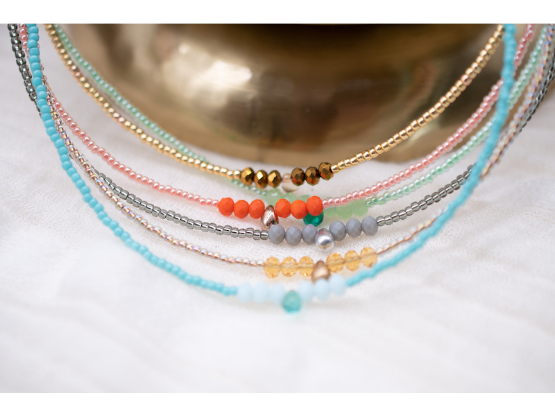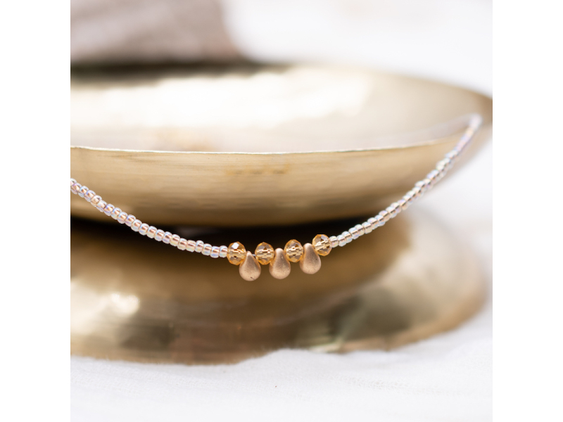 Toho seed bead choker necklace with gold plated lobster clasp and 3cm chain extender.
